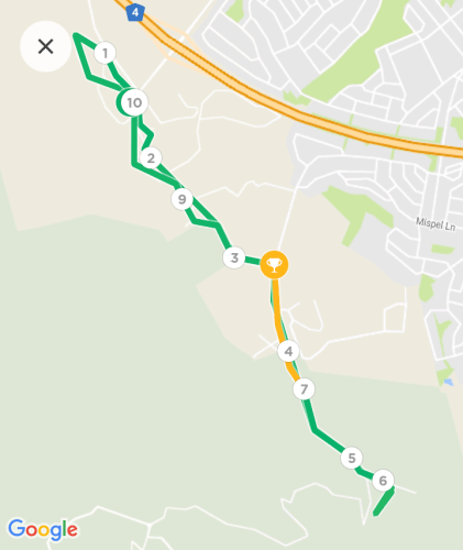 At 07:12 (3 minutes early), the gun went off! Although it’s called the “Mountain” Race, I didn’t quite expect us to start on an incline! But yes, we did! Before we even got to the first km marker, I told Ditiro (who was pacing me as he is nursing a hip injury) that I was out of breath, uncomfortable and just felt blehh. When I later looked at my Splits for the first 2 km (min/km: 07:42/ 06:57) it is no wonder I was feeling a bit out of sorts. I was powering up the incline at a faster pace than I usually do on my normal flat runs! I think I got intimidated by the other runners and went out too hot. So I reminded myself that this was my race/ my pace, and slowed it down a bit in the 3rd and 4th km, Splits: 07:45/ 08:13. But after passing the 4 km mark, I felt awful and did what I haven’t done since my 2nd race of the year… I walked. It was a strong walk, but I was initially disappointed in myself.  So it was great to hear Ditiro say that all we have done by walking is “adapted to the conditions and downshifted to save ourselves from burnout and collapse.” That actually made me feel tonnes better. My splits for km 5 and 6 are, 09:21/ 09:16. The more manageable pace gave us a chance to look at the beautiful cliff as we approached it, before turning around.