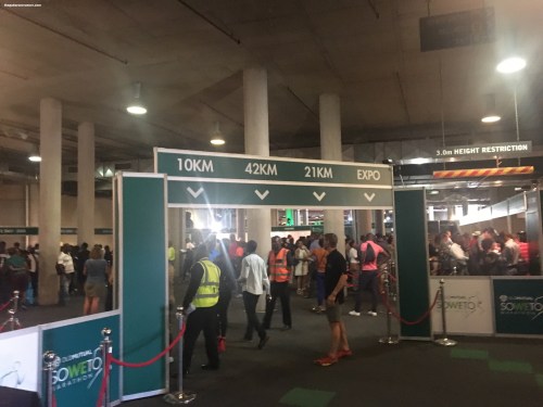 Race Expo: Tich who is based in Johannesburg collected our race packs on our behalf and reported: “The Soweto Marathon has been running for a number of years, and one can tell that from the efficiency of the organisation. During the build up to the race, there were constant email reminders about the race itself, stories about some of the competitors and important messages about practical matters, like collecting race packs. The collection started on Thursday 2 November from 10h00, and I arrived there just after 11h00. There were plenty of signs and it was easy to navigate into the stadium basement where I spotted the 10 km area.