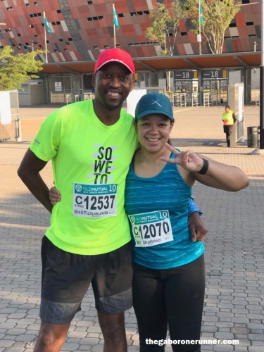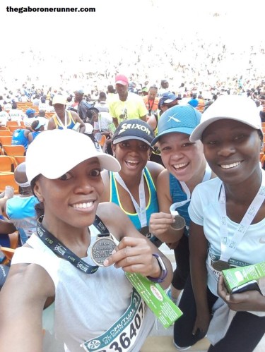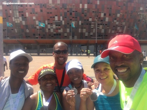 I found Tapiwa and then held onto a rail struggling to catch my breath, demanding a drink! I felt so nauseous but held it together. We soon found Tich, or rather he found us as he had been keeping track of us on the app so he knew as soon as we were done. Ditiro was soon done with his Half Marathon, and when Polelo and Elisa came through our running team was united again. We took in the glorious atmosphere, shared our individual war stories and made our way out of the Stadium where we soon met Paul.