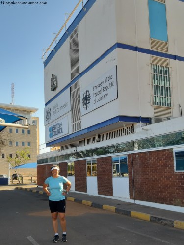 HRH Princess Marina was followed by then Prime Minister Seretse Khama and they made their way down Queens Road and onto the Notwane Road to the National Stadium where crowds (including my dad) were anxiously waiting. Queens Road runs parallel to the Main Mall and as you run down you will pass several Government buildings including the Land Tribunal, some of the big banks but also some key embassies or high commissions such as the British High Commission and the Embassy of the Federal Republic of Germany.