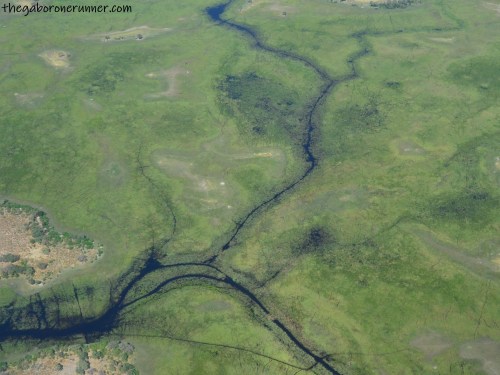 The Okavango Delta as described in this website is “a unique pulsing wetland [that] covers between 6 and 15 000 square kilometres of Kalahari Desert in northern Botswana and owes its existence to the Okavango (Kavango) River which flows from the Angolan highlands, across Namibia’s Caprivi Strip and into the harsh Kalahari Desert. Each year the Okavango River discharges approximately 11 cubic kilometres (1.1 × 10¹³ litres) of water into the Okavango Delta. Most of this water is lost to transpiration by plants (60%) and by evaporation (36%) with only 2% percolating into the aquifer system with the remainder finally flowing into Lake Ngami.”