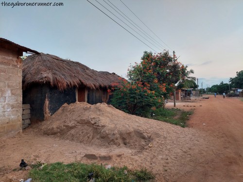 I crossed paths with a handful of people on the road and I heard the familiar sounds of people sweeping their yards using traditional straw brooms, longer than the ones we use in Botswana. I also encountered different animals including dogs, goats, chickens, pigs and cows.