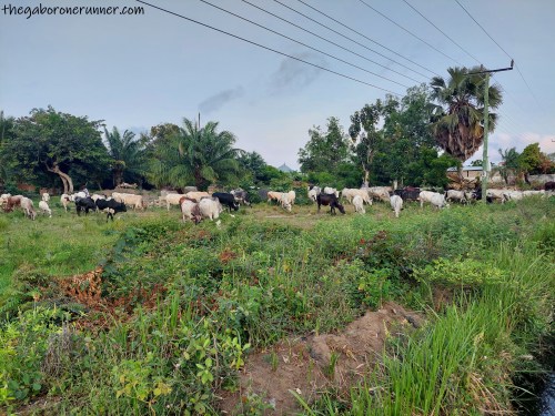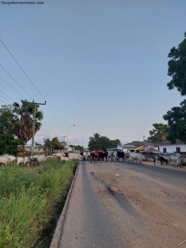 On one of my runs, I had to stop for a few minutes as a herd of cattle crossed the road – I’d love to say this was new to me but I’ve experienced this one too many times in Gaborone!