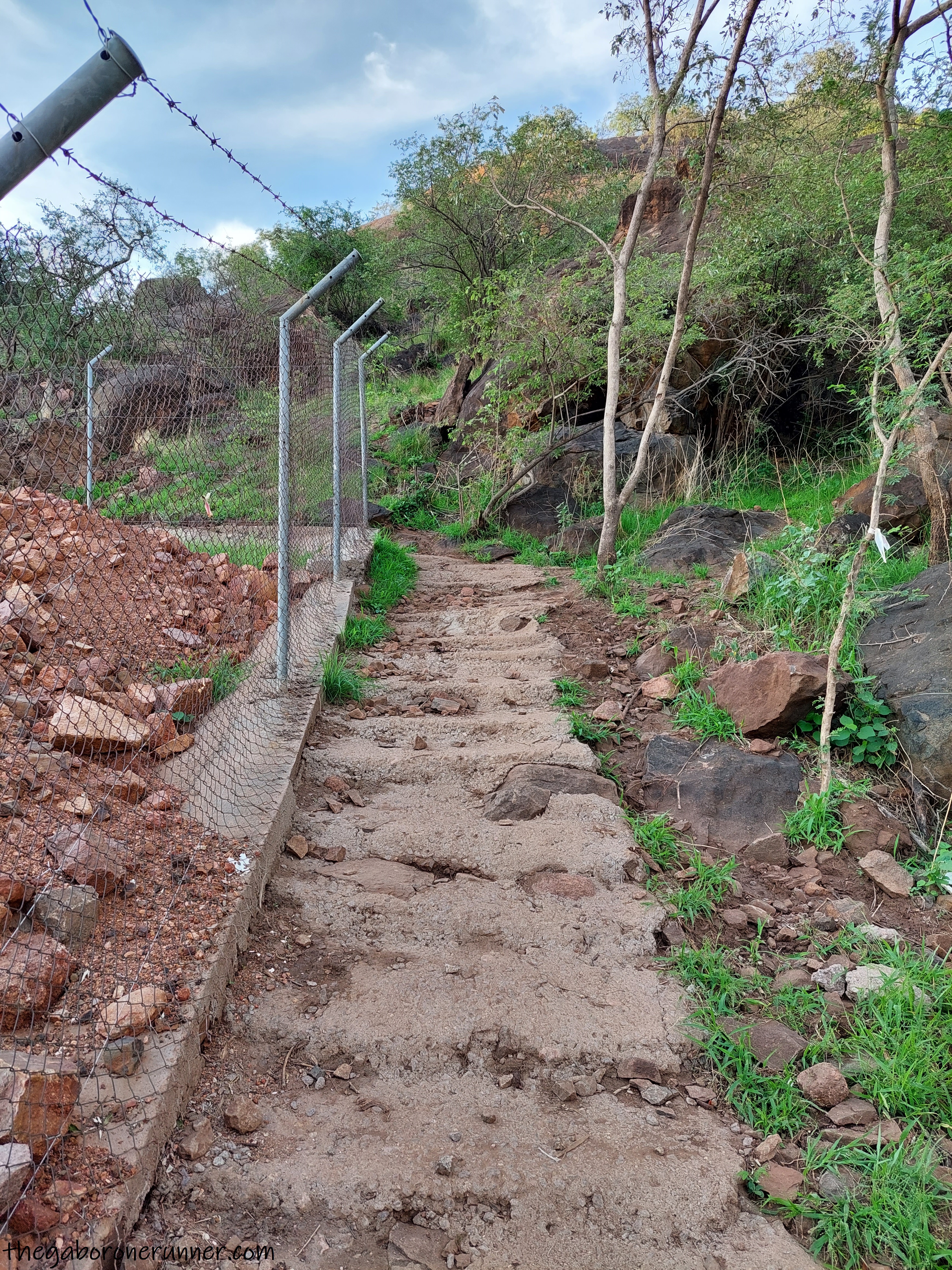Most people turn back when they arrive at the wide flattened area. This provides a good vantage point for seeing the Gaborone Dam as well as the A1 Road to Lobatse. This area is also very popular for outdoor aerobics classes and there are three blocks perfectly positioned for some push-ups for those who are feeling extra energetic at this point of the climb!