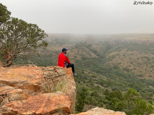 A slightly longer drive this time and 4 and a bit hours later, after navigating some winding roads we arrived in Pilgrim’s Rest at a vast resort nestled in the Mpumalanga mountains. Our accommodation was a self-catering chalet located right at the entry to a game reserve and the start of a 5km trail – a sign, perhaps? After lunch on a foggy and overcast day, I decided this would be a good time to explore the 5km trail. I found a willing volunteer in Tadiwa, and keeping one eye on the weather we dressed warmly and took raincoats as it looked like it would rain.