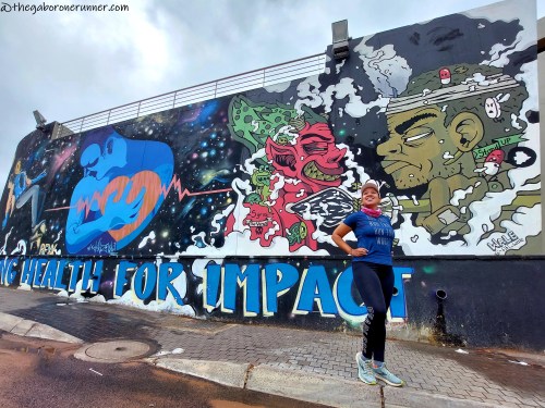 The above photo is found at Molapo Crossing and was designed and painted in 2018 by three artists in Botswana, Rexx (left) Khwezi (middle) and Fifi (right) to raise awareness for mental health.