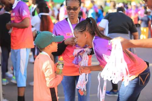 When I arrived, Ditiro had long finished his 10K race, as had the kids, and I found this gorgeous photo of my son collecting his medal on the Spar Community Challenge Facebook Page.